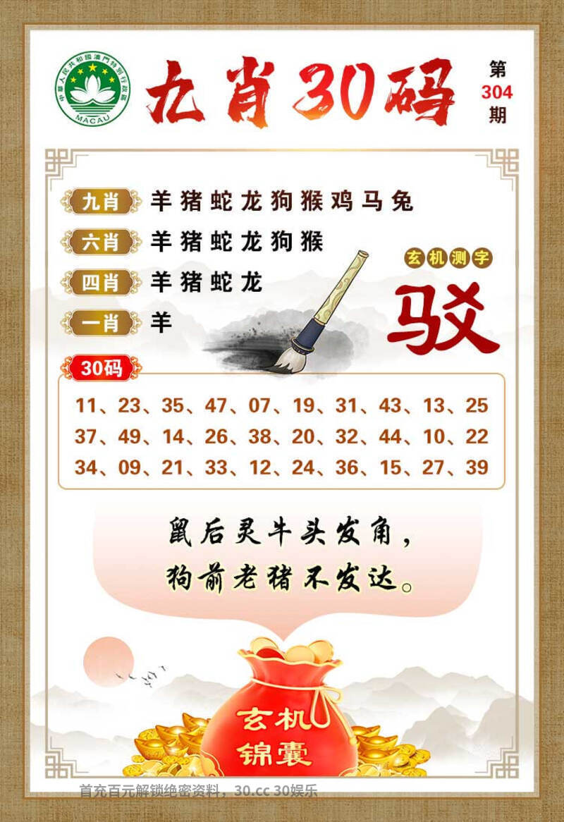 306期:澳门金牛 【必杀一合】 已公开